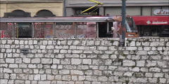背景:ボスニアヘルツゴビナ_モスタルのアパート(壁の穴は弾痕) 2016年2月27日撮影